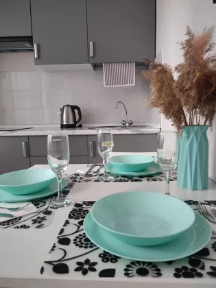 • Для комфортного проживания имеется вся необходимая бытовая техника( холодильник, микроволновка, стиральная машинка, телевизор, утюг,  эл/чайник, кондиционер и тд), мебель, посуда и предметы личной гигиены.